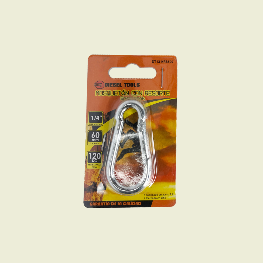 snap hook, carabiner, spring hook, 1/4 inch hook, 6mm hook, 120kg capacity hook, quick connect hook, hardware carabiner, zinc-plated hook, Diesel Tools hardware, tool connector, utility hook